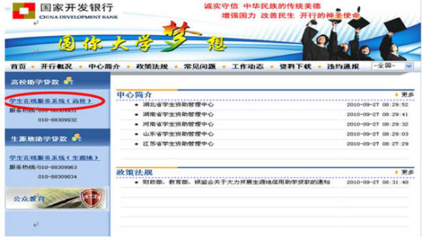 1.登录http://www.csls.cdb.com.cn,点击“学生在线服务系统(高校)”(图1)