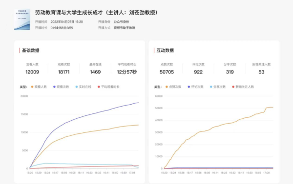 此次讲座收到了热烈反响,线上观看人数1.2万人,点赞量5万,分享319次,创下了我校最高在线人数的听课纪录。线上线下同步直播的讲课形式,使得传统素质课堂讲起来、活起来、新起来,是我校在教育课程改革的一次创新,也是五育并举、博雅育人的课堂方案优质样本,为继续构建我校“书院+课程+基地”的特色劳动教育育人体系做出了有效的探索与实践。
