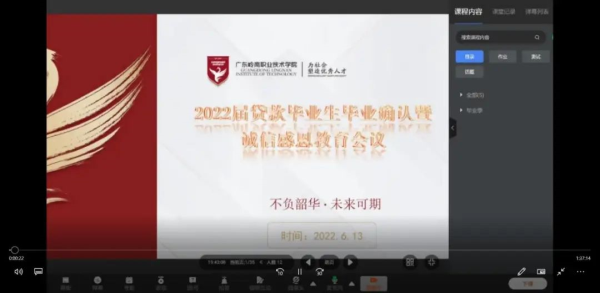 6月13日,学生资助管理中心开展2022年贷款毕业生毕业确认暨诚信感恩教育线上会议,针对2019级助学贷款学生进行了培训和教育。